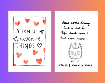 A minizine made for the February prompt "Favorites" in an online zine club. Obviously had to make it about my girlfriend :)